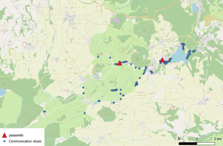 Un réseau de nœuds capteurs Solo connecté, collectant des données environnementales a été déployé sur le centre de recherche INRAE de Montoldre (Allier).